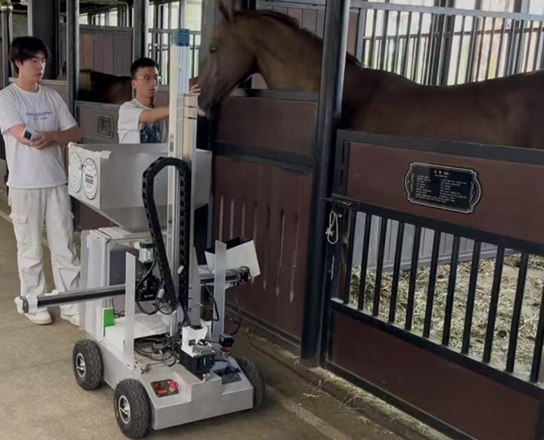 2025年10月24日,烏魯木齊達坂城區(qū)白楊溝村,牧民朱瑪哈力正在配合新疆野馬文化發(fā)展有限公司馬(野馬公司)育種技術人員,對馬匹進行孕檢。 得益于自治區(qū)現(xiàn)代畜禽種業(yè)提升專項資金的支持,在烏魯木齊市農業(yè)農村局、高新區(qū)農業(yè)農村局的指導下,2025年,野馬文化公司利用優(yōu)質馬種質資源和細管凍精技術,為烏魯木齊周邊農牧民免費開展馬品種改良和繁育工作,朱瑪哈力就是受益者之一。早在2024年,野